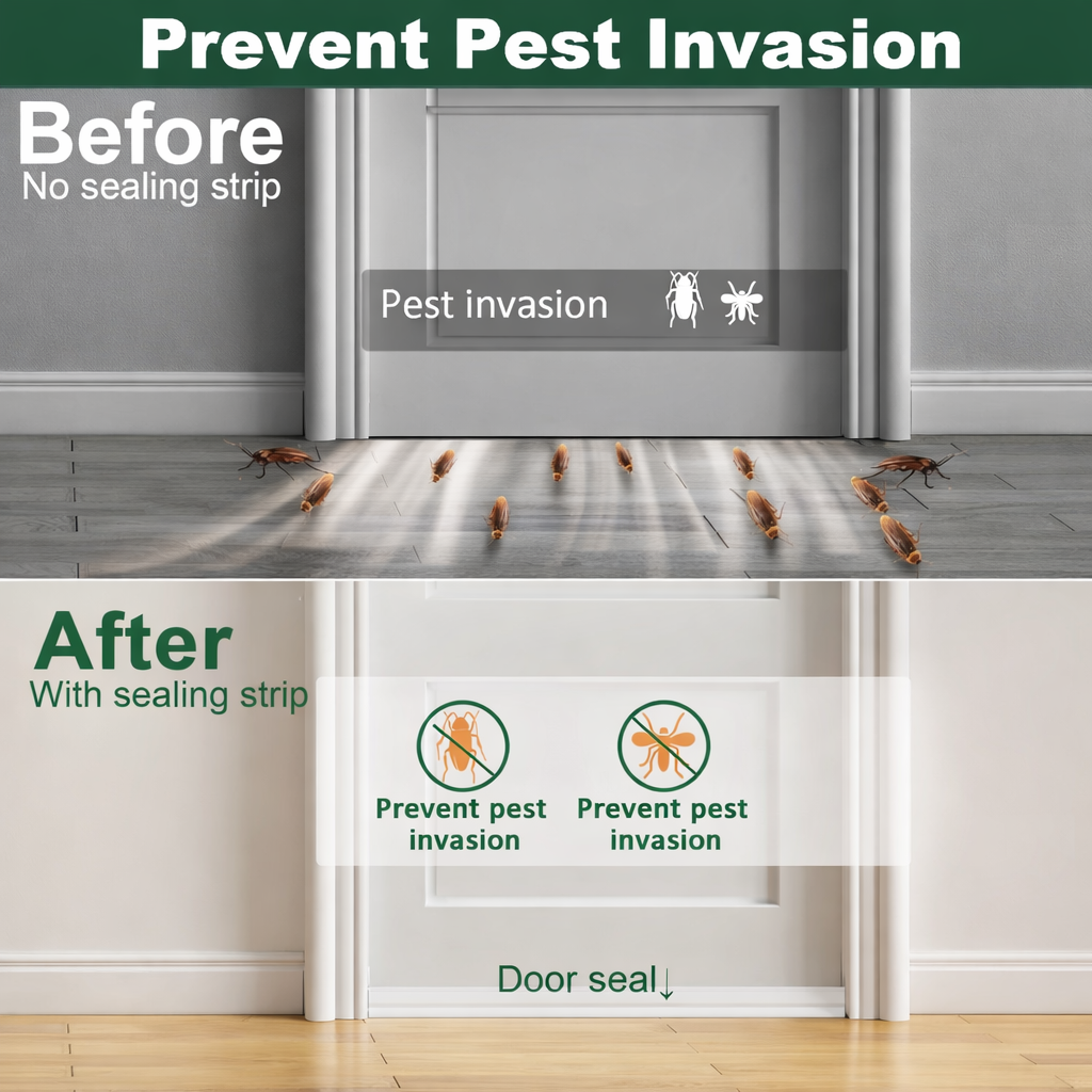 Blocks cockroaches, ants, insects, and other pests from entering through door gaps.